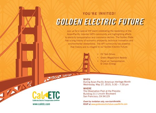 Description: Invitation and program design for the "Golden Electric Future" event, during Asian/Pacific Islander Heritage Month. Created a style unique to the event, but still worked within the CalETC brand.